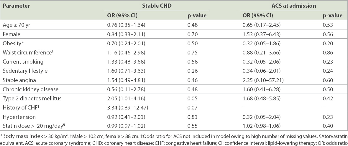 Predictors of low-density lipoprotein cholesterol < 70 mg/dL in patients treated with LLT.
